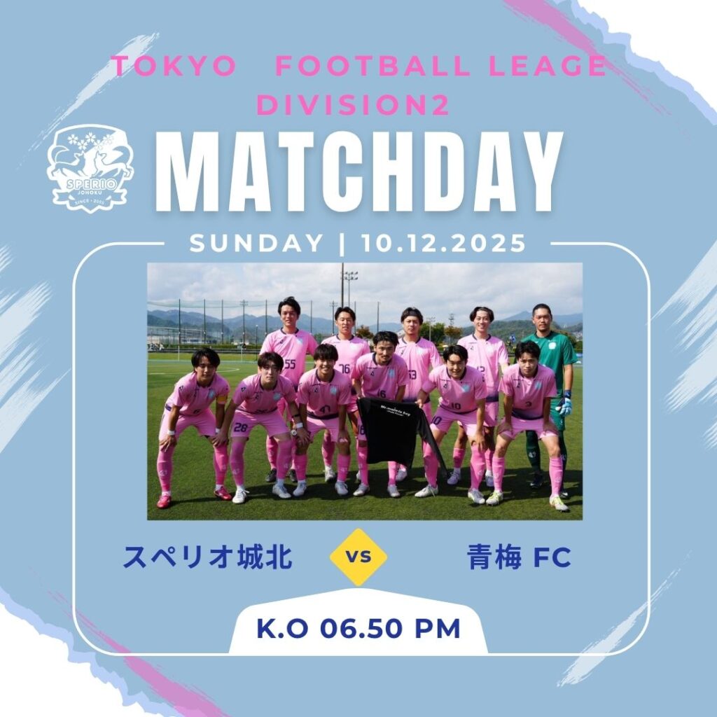 このたび、10月12日(日)、スペリオ城北の2025年度 東京都社会人サッカー2部リーグ 第10節が開催されることとなりました。