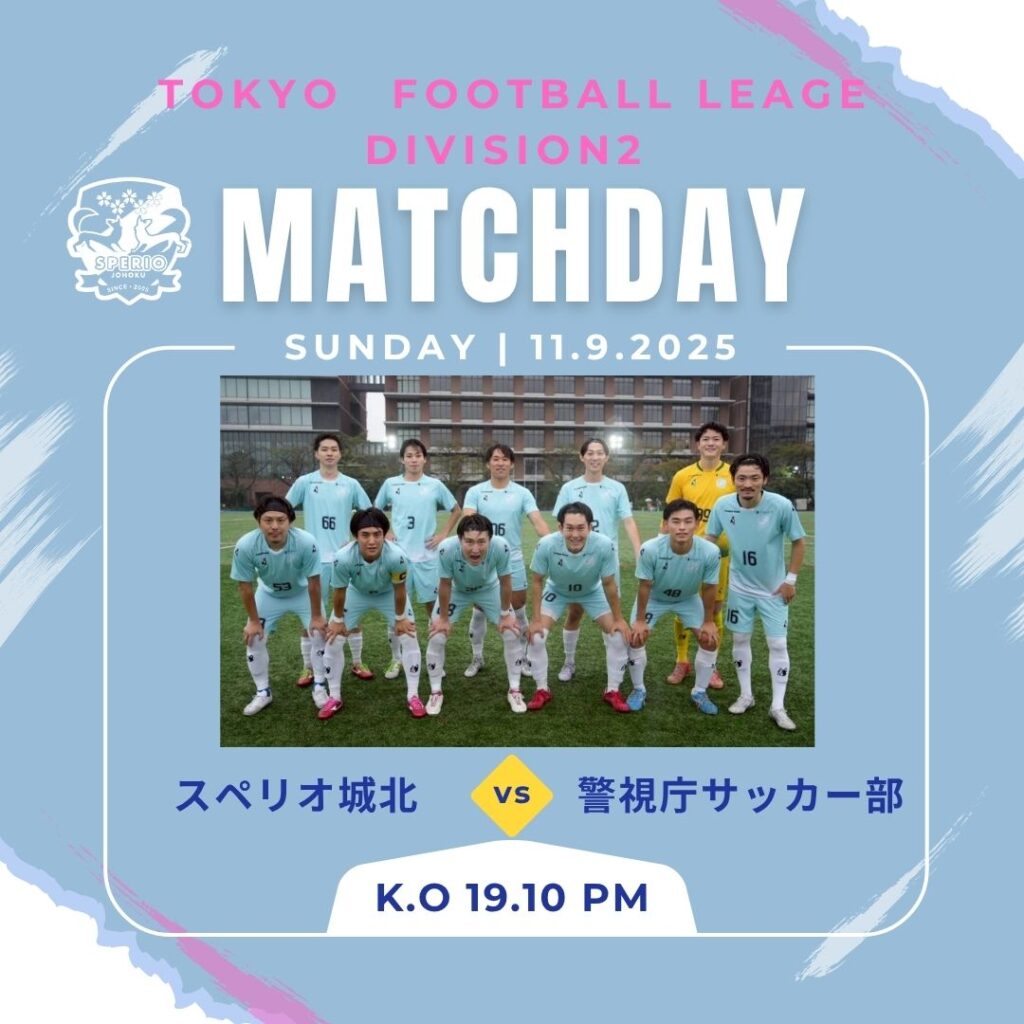 このたび、11月9日(日)、スペリオ城北の2025年度 東京都社会人サッカー2部リーグ 第12節が開催されることとなりました。